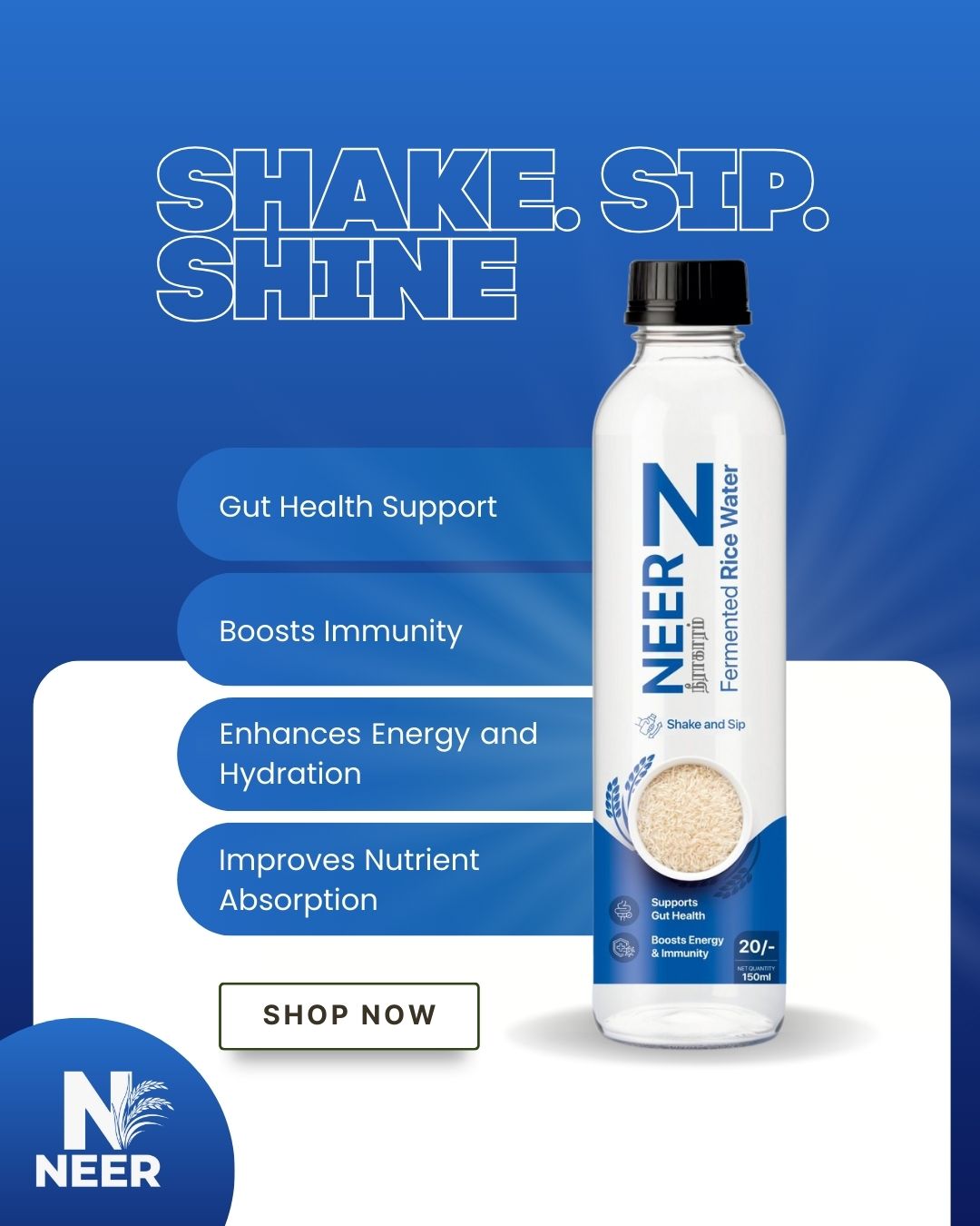 Rooted in the wisdom of traditional Indian wellness, NNEER revives the age-old practice of fermented rice water — a natural source of energy, hydration, and gut balance.